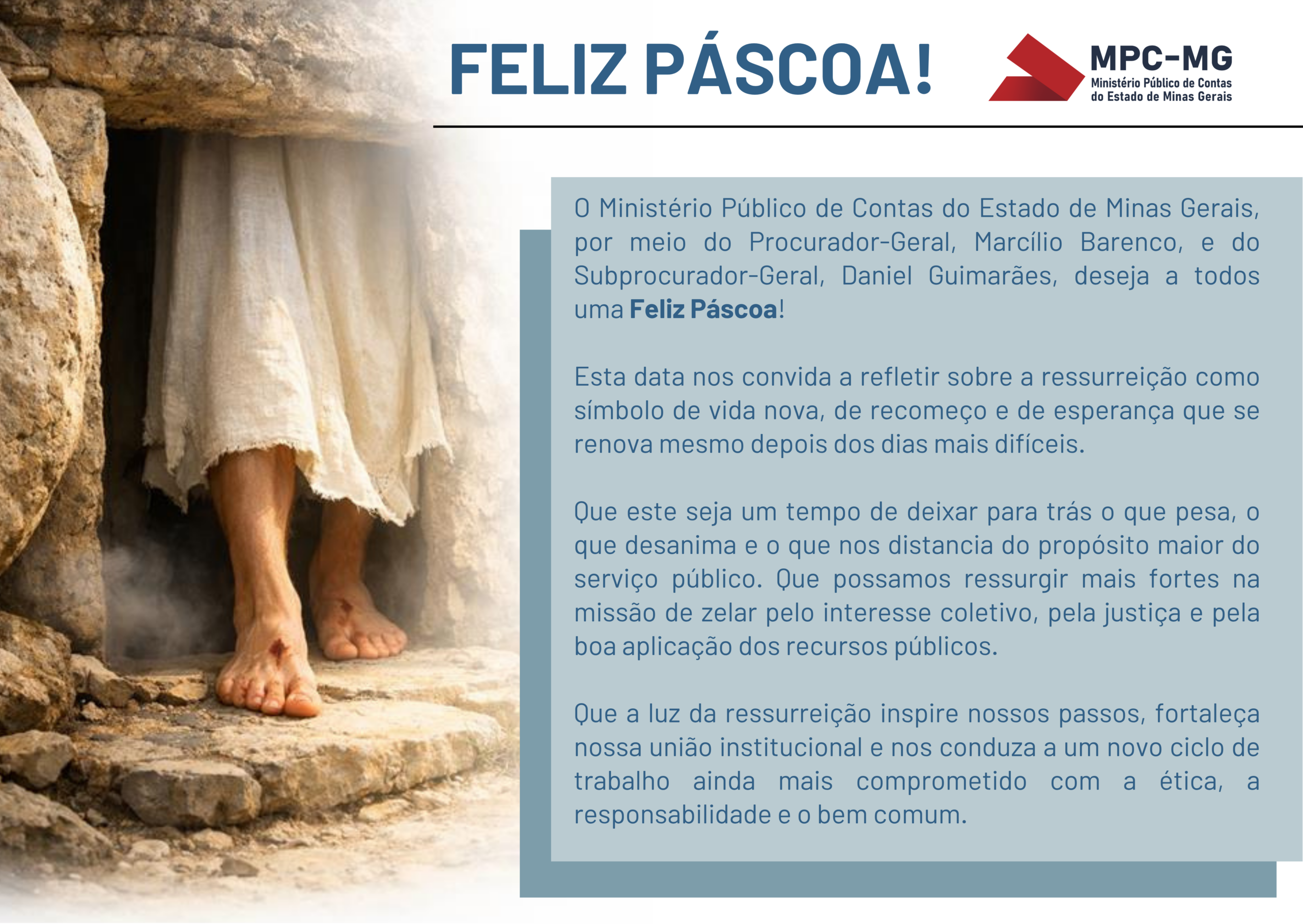 No Ministério Público de Contas, esse dever traduz-se no monitoramento rigoroso das despesas públicas, na promoção da transparência e na defesa do interesse coletivo. Analogamente ao mais profundo significado da Páscoa, que aponta para a libertação, em todas as suas dimensões, física, moral e espiritual, o controle externo atua para prevenir desvios e consolidar uma cultura de responsabilidade e ética na Administração Pública.