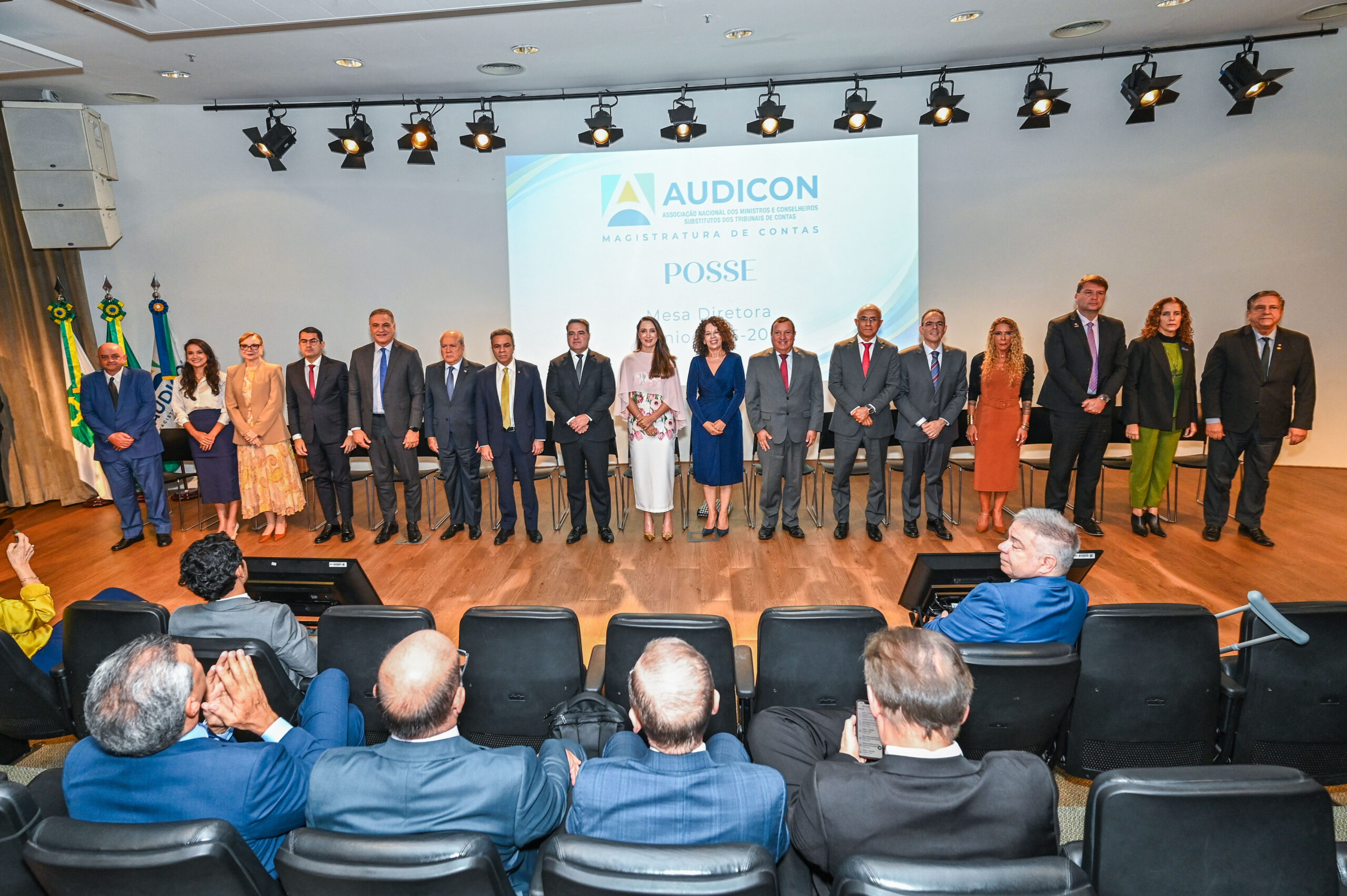 A cerimônia reuniu representantes do Sistema Controle Externo, autoridades públicas e dirigentes de entidades nacionais para a recondução da Conselheira Substituta Milene Dias da Cunha à Presidência da Associação no biênio 2026-2027. Por Minas Gerais, estiveram presentes o Conselheiro Corregedor, Gilberto Diniz; os Conselheiros Substitutos Licurgo Mourão e Telmo Passareli.