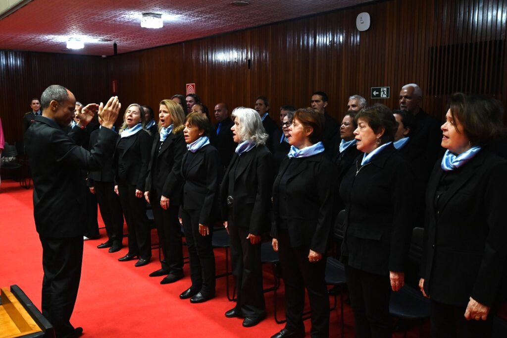 Após os discursos, o Coral de Contas e Cantos, do TCE-MG, interpretou algumas músicas do cancioneiro popular brasileiro.