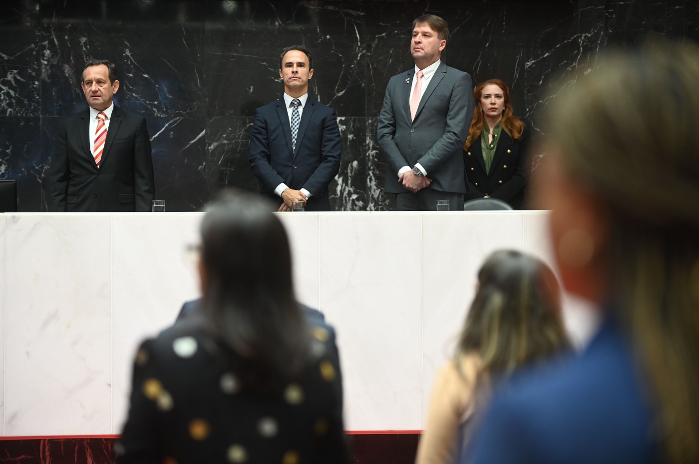 Além de Marcílio Barenco, compuseram o dispositivo de honra: o Presidente da Assembleia Legislativa do Estado de Minas Gerais, Deputado Tadeu Leite; o Presidente do TCE-MG, Conselheiro Durval Ângelo; o Presidente do Tribunal de Justiça do Estado de Minas Gerais, Desembargador Luiz Carlos de Azevedo Corrêa Junior; o Presidente do Tribunal Regional Eleitoral de Minas Gerais, Desembargador Júlio César Lorenz; o Procurador-Geral de Justiça Adjunto, Hugo Barros de Moura Lima; o Vice-Presidente do TCE-MG, Conselheiro Agostinho Patrus; e a Chefe de Gabinete da Defensoria Pública de Minas Gerais, Defensora Caroline Loureiro Goulart Teixeira.