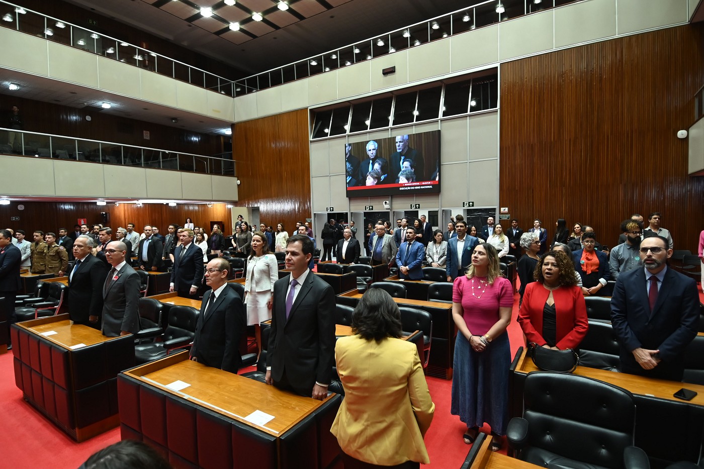 A sessão solene reuniu autoridades dos Três Poderes, representantes de órgãos de controle, servidores e convidados para celebrar a trajetória do Tribunal de Contas, criado pela Constituição Mineira de 1935. Da Corte de Contas, estiveram presentes o Presidente, Conselheiro Durval Ângelo; o Vice-Presidente, Conselheiro Agostinho Patrus; o Corregedor, Conselheiro Gilberto Diniz; o Ouvidor, Conselheiro Adonias Monteiro; e os Conselheiros em exercício Telmo Passareli e Hamilton Coelho.